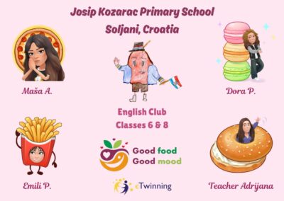 Učenice 6. i 8. razreda koje pohađaju izvannastavnu aktivnost English Club s nastavnicom Adrijanom Roždijevac uključile su se ove školske godine u eTwinning projekt pod nazivom “Good food, Good mood”.