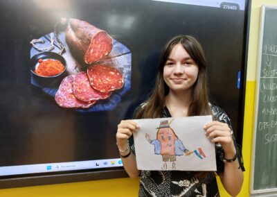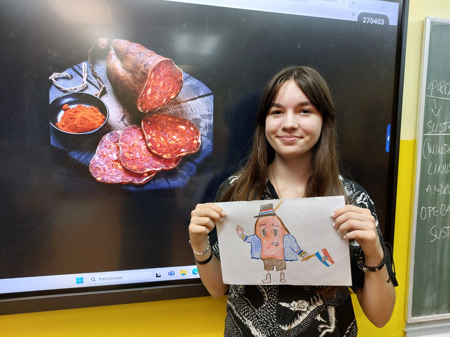 Naše učenice su se predstavile partnerima u projektu koristeći aplikacije Bitmoji i ChatterPix, a za maskotu našeg tima izabrale su kulen (Slavonian kulen) čiji je logo sa slavonskim obilježjima i hrvatskom zastavom kreativno i vješto nacrtala učenica Maša A. iz 8. razreda. Uvodni video naših učenika (Team 3 u projektu) možete pogledati na ovoj poveznici: https://youtu.be/KSyIApROOcE