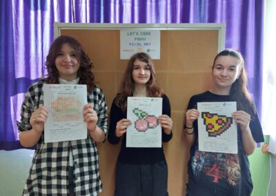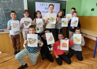 Učiteljica je izradila aktivnost po nazivom ‘Let’s code food!’ kojom su učenici izrađivali tzv. Pixel Art, odnosno, kodirali su koristeći piksele koje su morali obojiti i na taj način su izradili crteže razne hrane, voća, povrća.