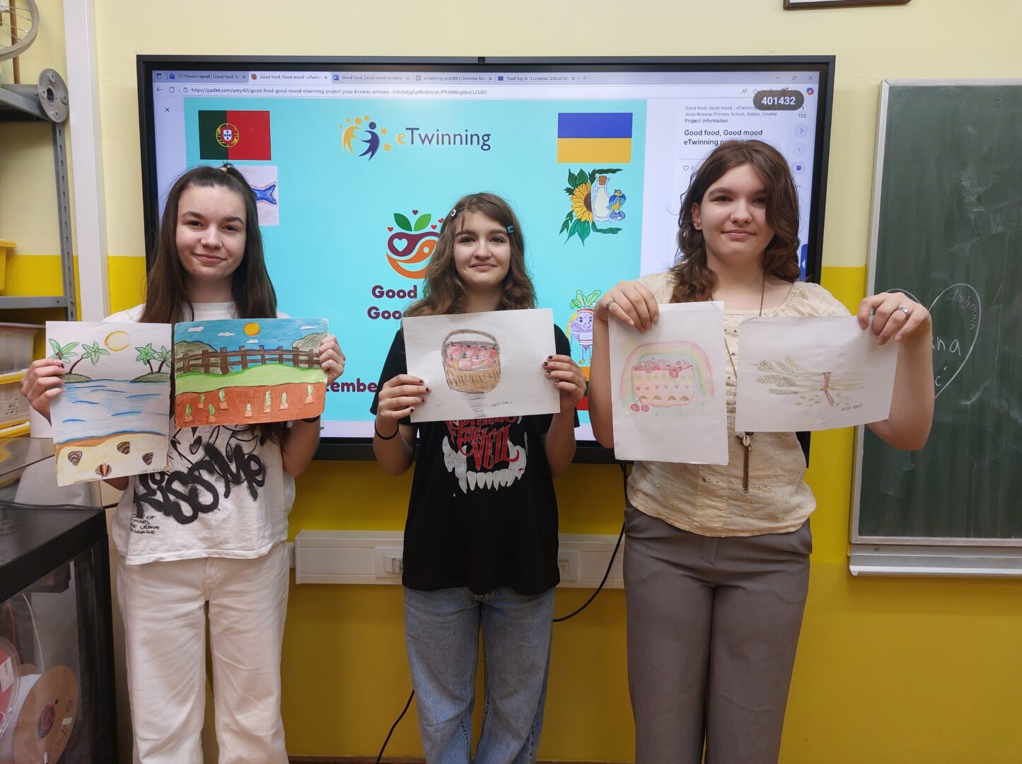 Učenice 6. i 8. razreda koje pohađaju izvannastavnu aktivnost English Club s nastavnicom Adrijanom Roždijevac uključile su se i ove školske godine u još jedan eTwinning projekt pod nazivom “Good food, Good mood”. U projektu sudjeluju škole partneri iz Portugala, Ukrajine i Litve, a cilj projekta je aktivno koristiti engleski jezik na temu hrane i razvijati jezične vještine, kreativnost, kao i digitalne kompetencije uporabom raznih digitalnih alata. Međusobnom suradnjom na projektnim aktivnostima, cilj je i potaknuti međunarodnu suradnju među školama partnerima i steći nova međunarodna prijateljstva.