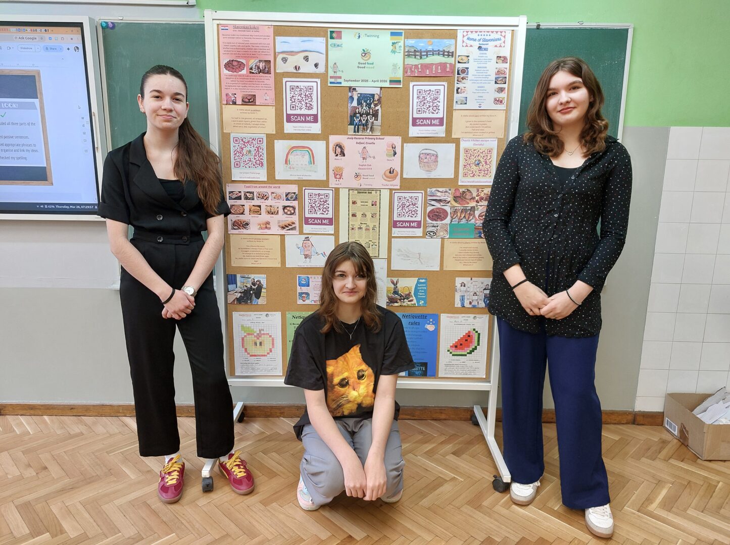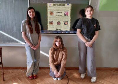 Kao dio eTwinning projekta “Good food, Good mood”, učenice 6. i 8. razreda koje pohađaju izvannastavnu aktivnost English Club s nastavnicom Adrijanom Roždijevac, tijekom mjeseca studenog su izradile zagonetke o hrani koje su izabrale škole partneri iz Portugala, Ukrajina i Litve. Učenice su samostalno sastavile kreativne i domišljate zagonetke na engleskom jeziku o raznim vrstama hrane (voće, povrće, žitarice, proteini), snimale se kako ih izgovaraju, crtale hranu i značenje idioma vezanih uz prehranu, kao i izradile digitalne igre u alatima Wordwall i LearningApps.