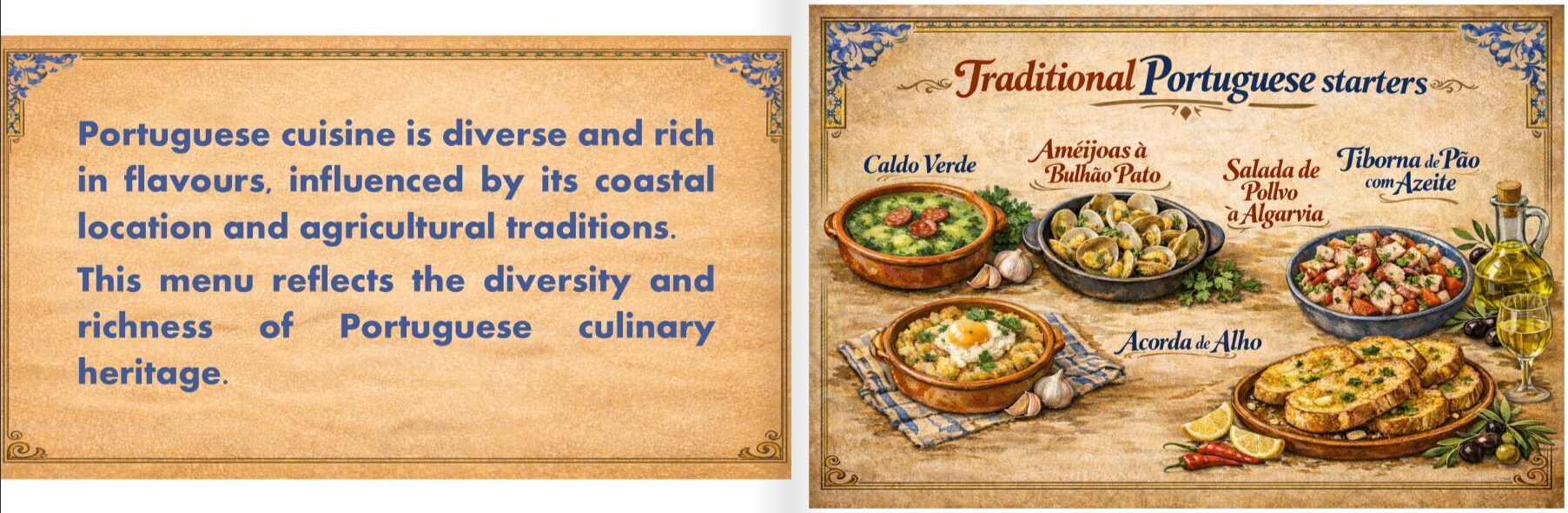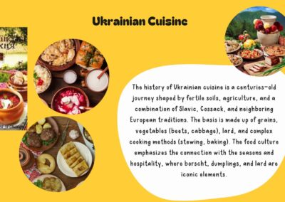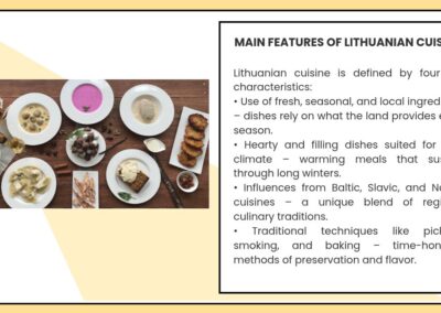 Škole partneri iz Portugala, Ukrajine i Litve su bogatstvo svoje nacionalne kuhinje i najpoznatija nacionalna jela predstavili u obliku e-knjige i prezentacija. Baš kao i naša slavonska, odnosno, hrvatska kuhinja, nacionalne kuhinje Portugala, Ukrajine i Litve odražavaju bogatu tradiciju i kulturni identitet svojih zemalja, kroz raznolika jela pripremljena od lokalnih sastojaka, koja povezuju povijest, običaje i način života njihovih naroda.