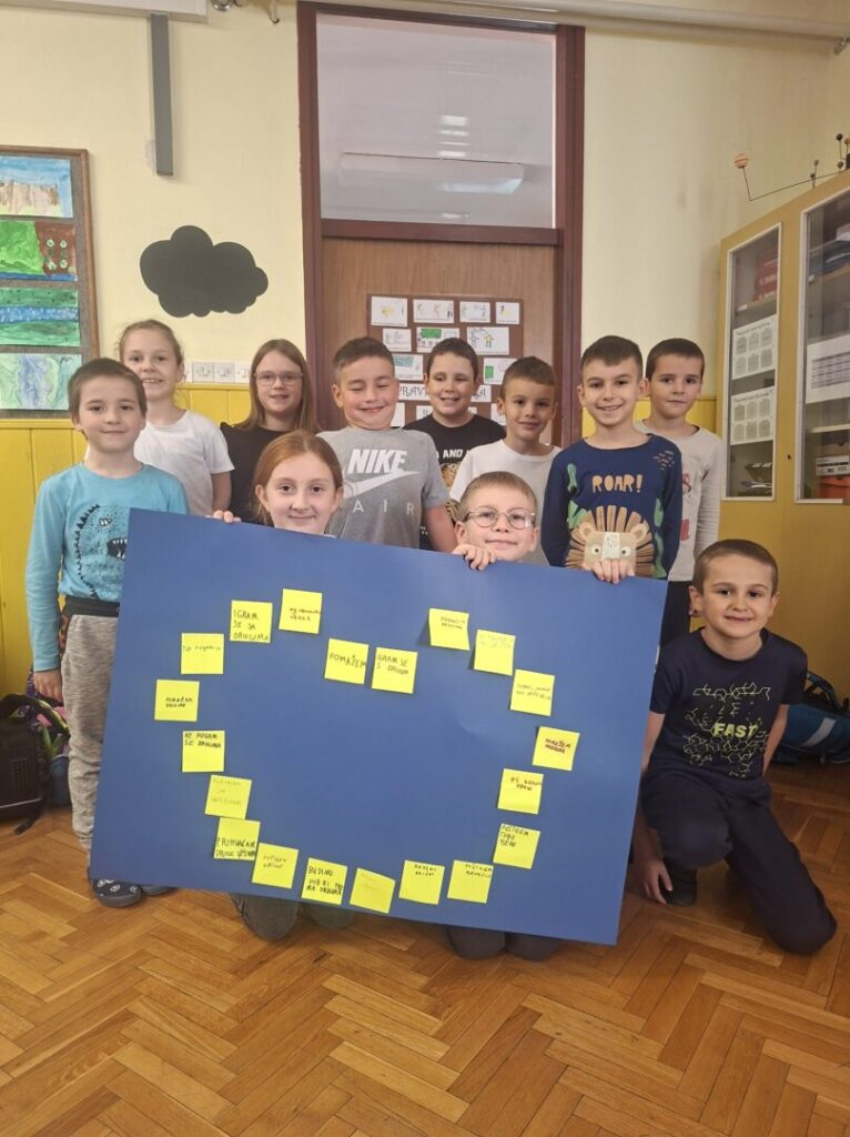 Učenici 2. razreda su ove školske godine, uz mentorstvo učiteljice Branke Čaić, bili uključeni u projekt ˝ Činimo dobro otiskom srca ˝ kroz platformu „DoGood People” u suradnji s Nacionalnom zakladom za razvoj civilnoga društva. Ciljevi projekta su podučavanje o povezanosti održivosti hrane i okoliša s prehranom, poljoprivredom, energijom, životnim stilovima i smanjenjem otpada. Učenici su kroz 10 izazova naučili da je važno živjeti održivo, a to znači da gasimo svijetlo kad izlazimo iz učionice, da štedimo plin, vodu; kroz pisanje pisma podrške bakama i djedovima potrebno je više pažnje posvećivati i svojim najmilijima; razmjenjivanjem ručkova naučili smo dijeliti sa svojim vršnjacima; da je i nesavršeno voće jednako ukusno; mješovitom nogometnom utakmicom zabili smo gol protiv nejednakosti: pravilno reciklirati otpad i da smeće pripada kanti za smeće; sadnja stabla ili biljke jedan je od najjednostavnijih načina koje možemo napraviti za doprinos okolišu te izradom zida raznolikosti uočili smo vrijednost različitosti. Učenici su uspješno odradili svaki izazov kroz koji su učili i zabavili se.