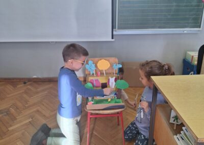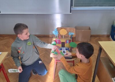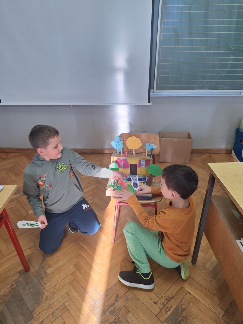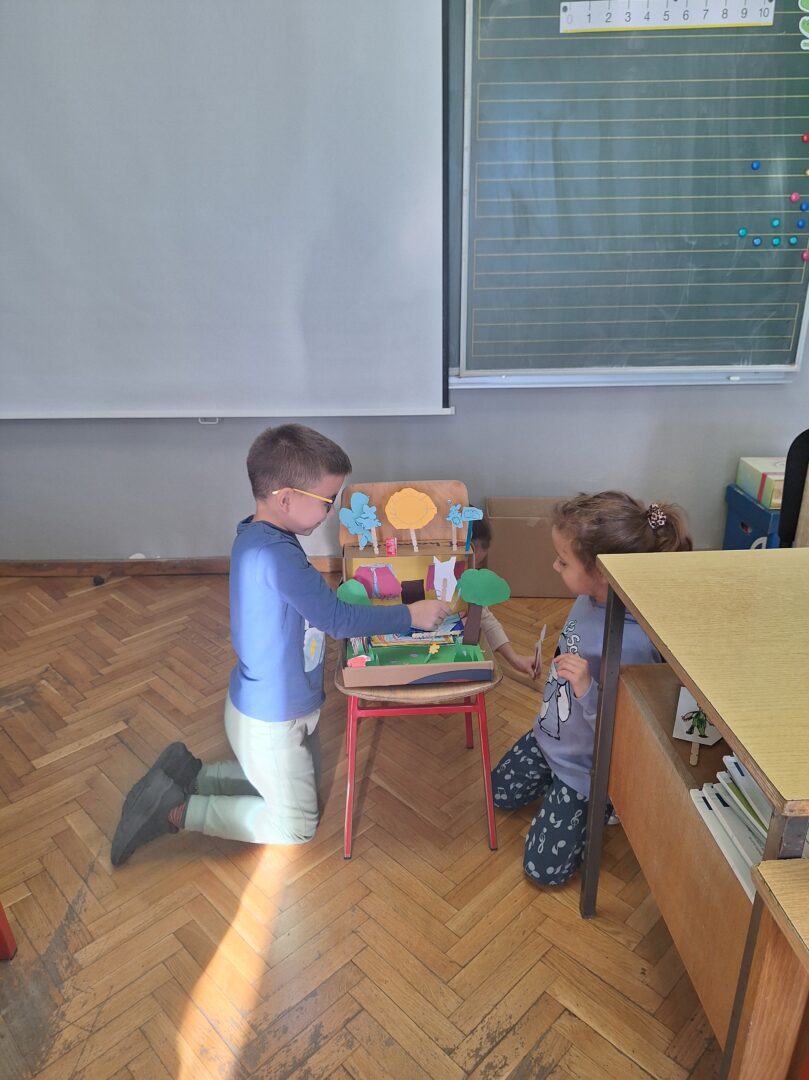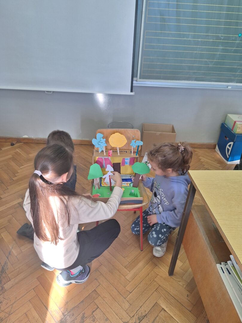 Učenici prvog razreda danas su imali drugačiji i vrlo kreativan sat lektire. Umjesto uobičajenog čitanja i razgovora o djelu, školska knjižničarka Suzana Jozinović priredila im je zanimljivu radionicu pod nazivom „Kazalište u kutiji“, koja je učenike oduševila i potaknula njihovu maštu.