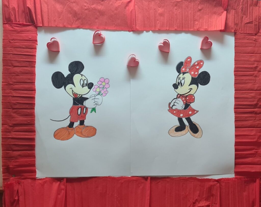 Povodom Valentinova, kreativci su izradili romantičan pano posvećen prijateljstvu i lijepim porukama. Dominiraju crvena boja i motivi srca, a likovi Mickeyja i Minnie dodatno naglašavaju ljubav, pažnju i toplinu koju obilježavamo toga dana.