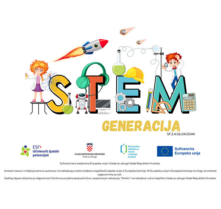 Centar za socijalno poduzetništvo, savjetovanje i edukaciju „Feniks“ u sklopu projekta „STEM Generacija“ organizira interaktivne i edukativne radionice za djecu vrtićke dobi (3-6 godina) te djecu od 1. do 7. razreda osnovne škole.